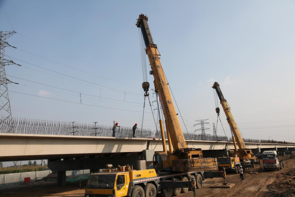 S224大沂線彌河橋位于濱海經(jīng)濟開發(fā)區(qū)內(nèi),地質(zhì)狀況以粉砂、亞粘土等為主。按照集散一級公路要求橋梁寬度為21m,上部結(jié)構(gòu)采用30m預(yù)應(yīng)力混凝土小箱梁,橋跨組合為93×30m,前進方向右交角90°,中心樁號K5+427,下部結(jié)構(gòu)采用肋板臺、柱式墩,鉆孔灌注樁基礎(chǔ),按摩擦樁設(shè)計,橋梁全長2797m。全橋采用三孔一聯(lián),共31聯(lián)。聯(lián)端均采用D80型伸縮縫。聯(lián)端支座采用GYZF4350x65型四氟滑板式橡膠支座,其余支座采用GYZ400x84型板式橡膠支座。鋪裝層厚度為4cmSMA-13瀝青瑪蹄脂碎石混合料+6cmAC-20SBS改性瀝青混合料+10cmC50水泥混凝土現(xiàn)澆層。工程總造價2.516億元,由山東宏昌路橋集團有限公司承建。